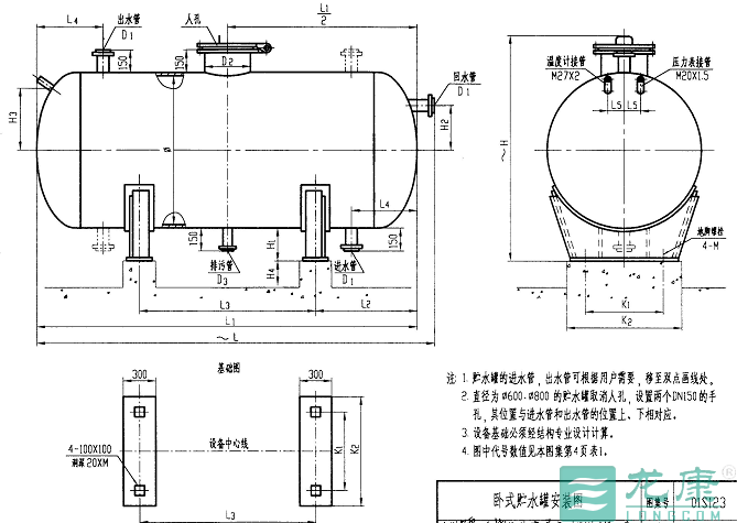 卧式贮水罐安装尺寸表 | ||||||||||||||||||||