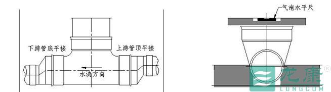 3、井座与汇入管,排出管连接需要变径,采用异径接头时,当汇入管径小于井座接口管径时,应管顶平接;井座排出管接口大于下游管道时,应管内底平接。