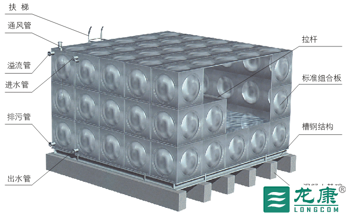 不锈钢水箱结构示意图 不锈钢水箱内部加强筋结构
